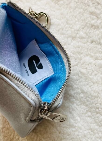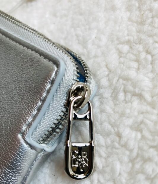 カーリンの小銭入れは、華やかなシルバーカラーが特徴で、スタイリッシュなデザインが目を引きます。