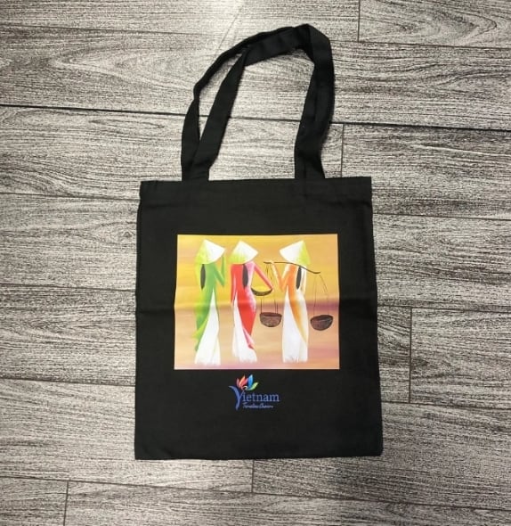 このトートバッグは、シンプルでありながらおしゃれなベトナムプリントが施されたキャンバス製です。