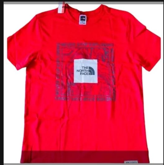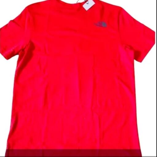 ザノースフェイスの半袖Tシャツは、鮮やかなレッドが特徴で、アウトドアからカジュアルな日常使いまで幅広く活躍するアイテムです。